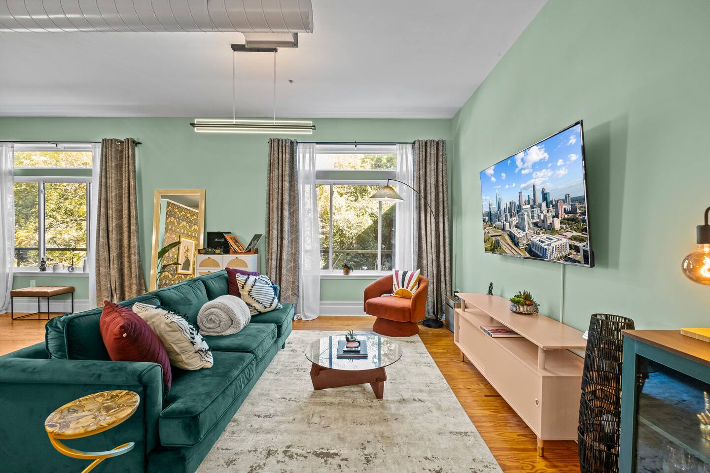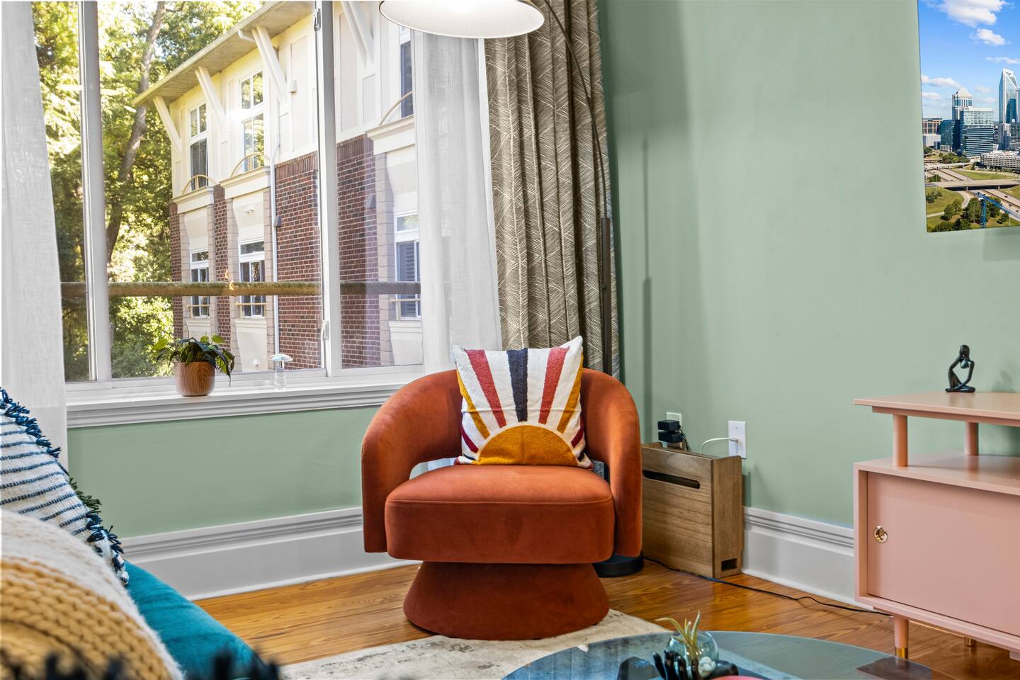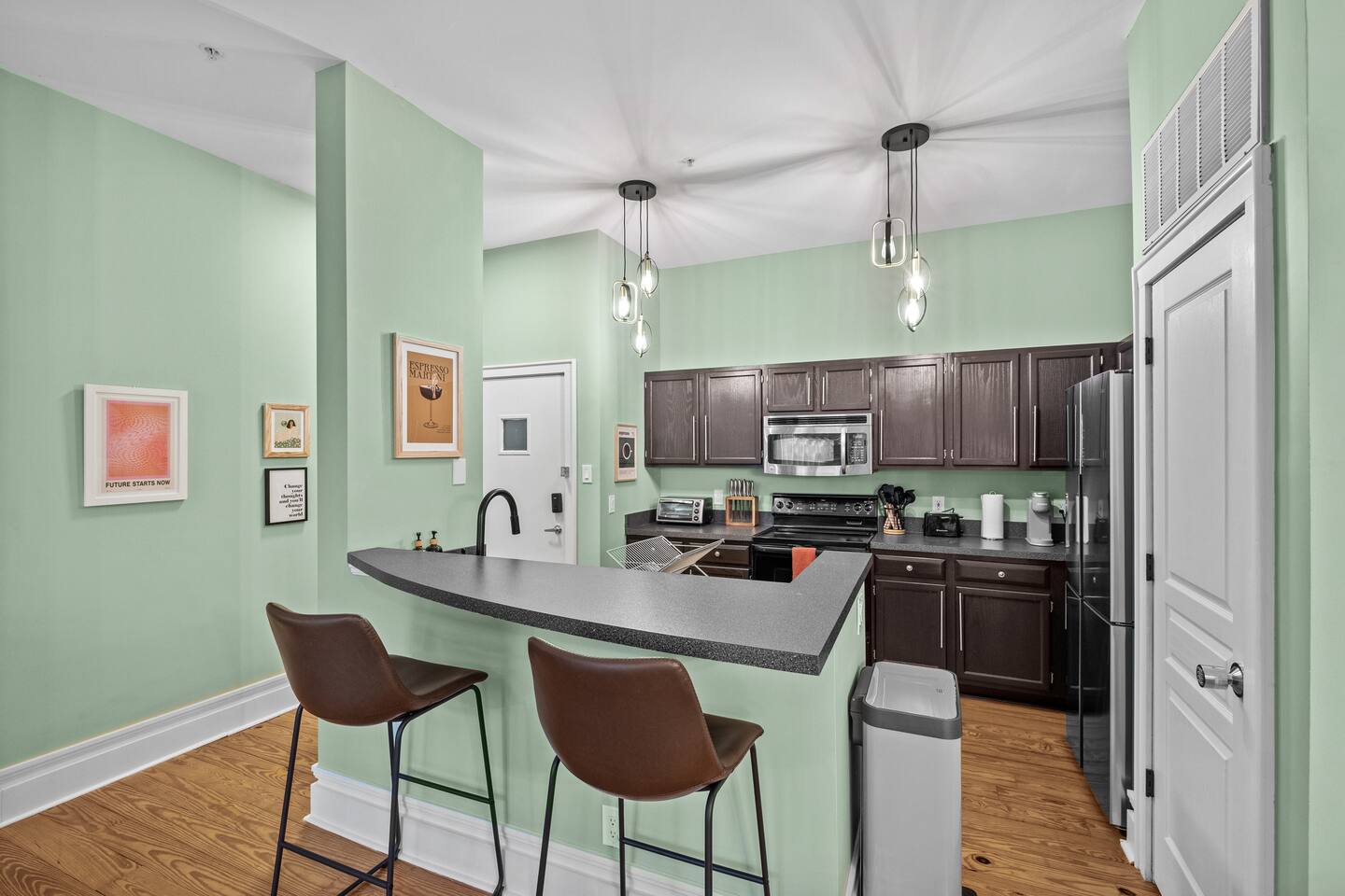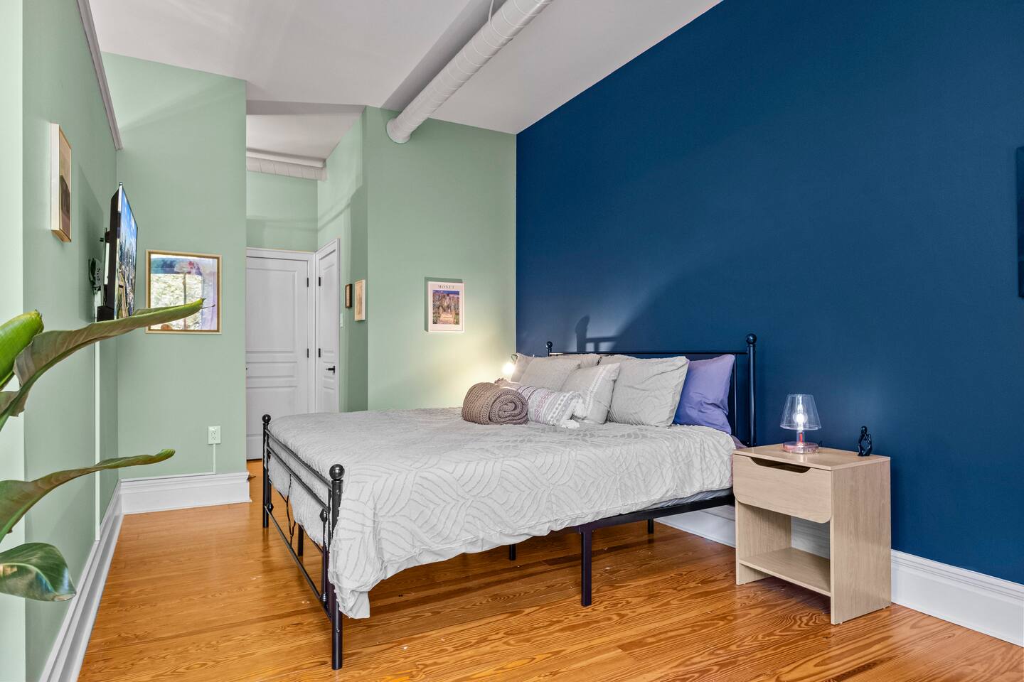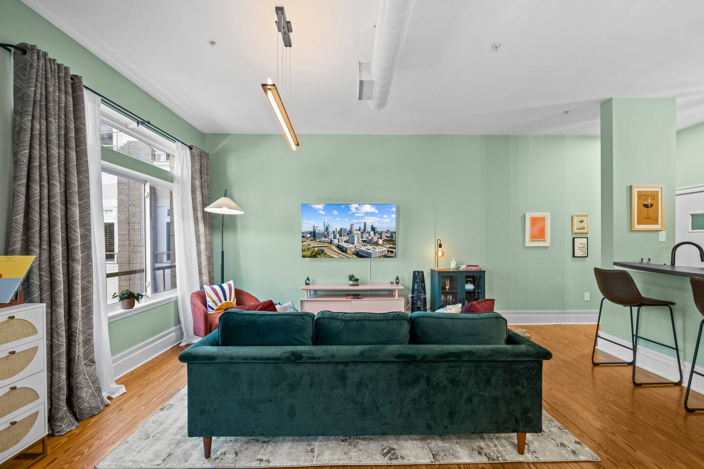 Discover a King sized cozy loft in Elizabeth! Open layout, 10ft ceilings, pine wood floors. Kitchen with a coffee bar, new stainless steel appliances. Spacious living area, dining space. Bedroom with privacy wall, large walk-in closet. Updated bathroom, new sink, shower head. Secure building with elevator, gated parking, outdoor patio. Free live television and internet! Prime location, walk to Elizabeth/Plaza Midwood shops, restaurants, wine bars. Short drive to Uptown. 7 day minimum booking.