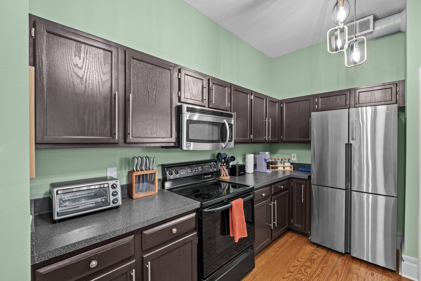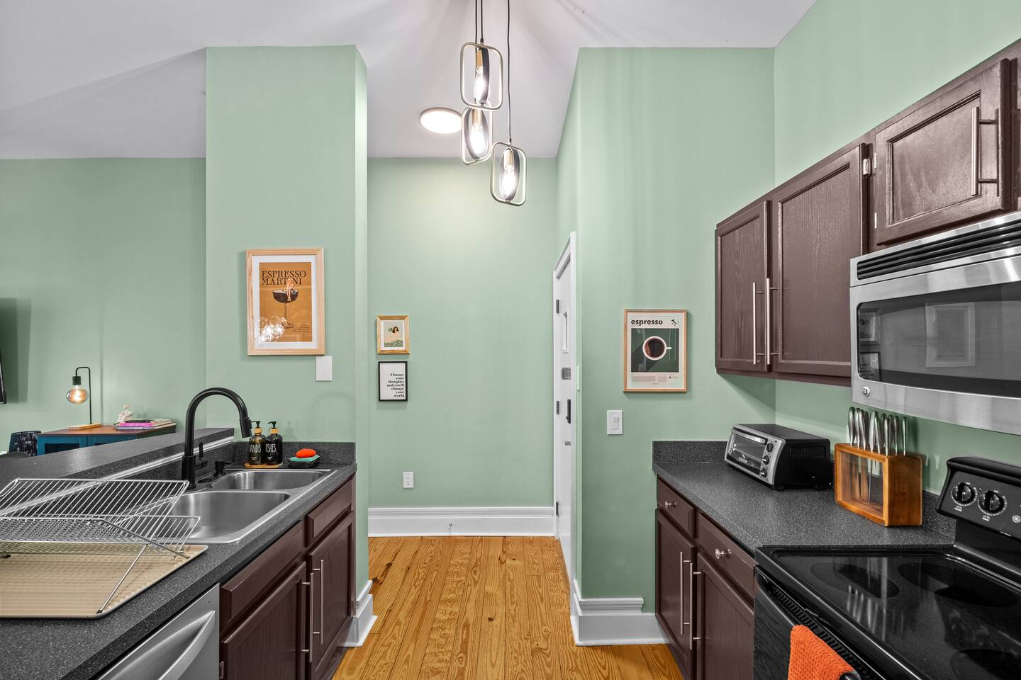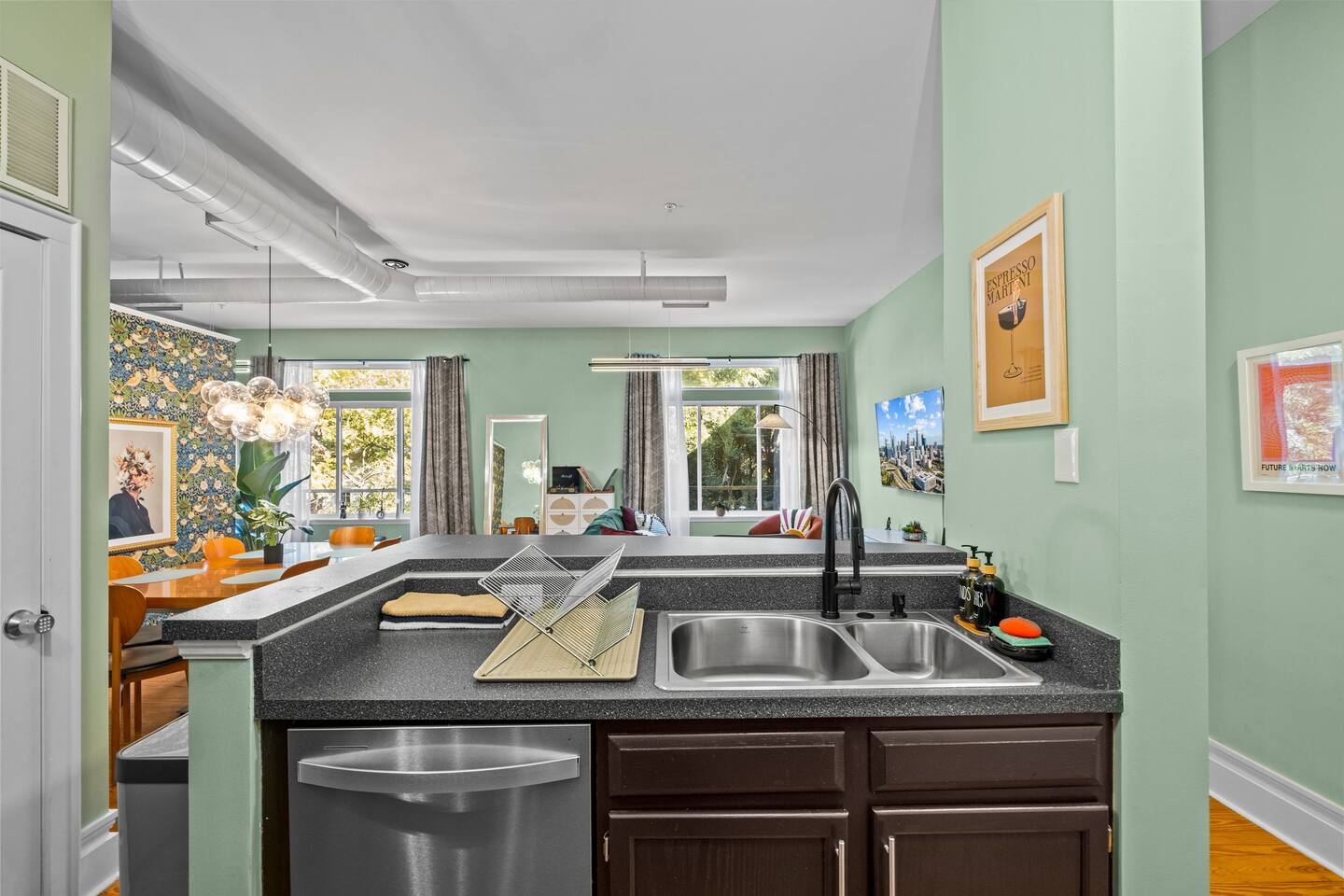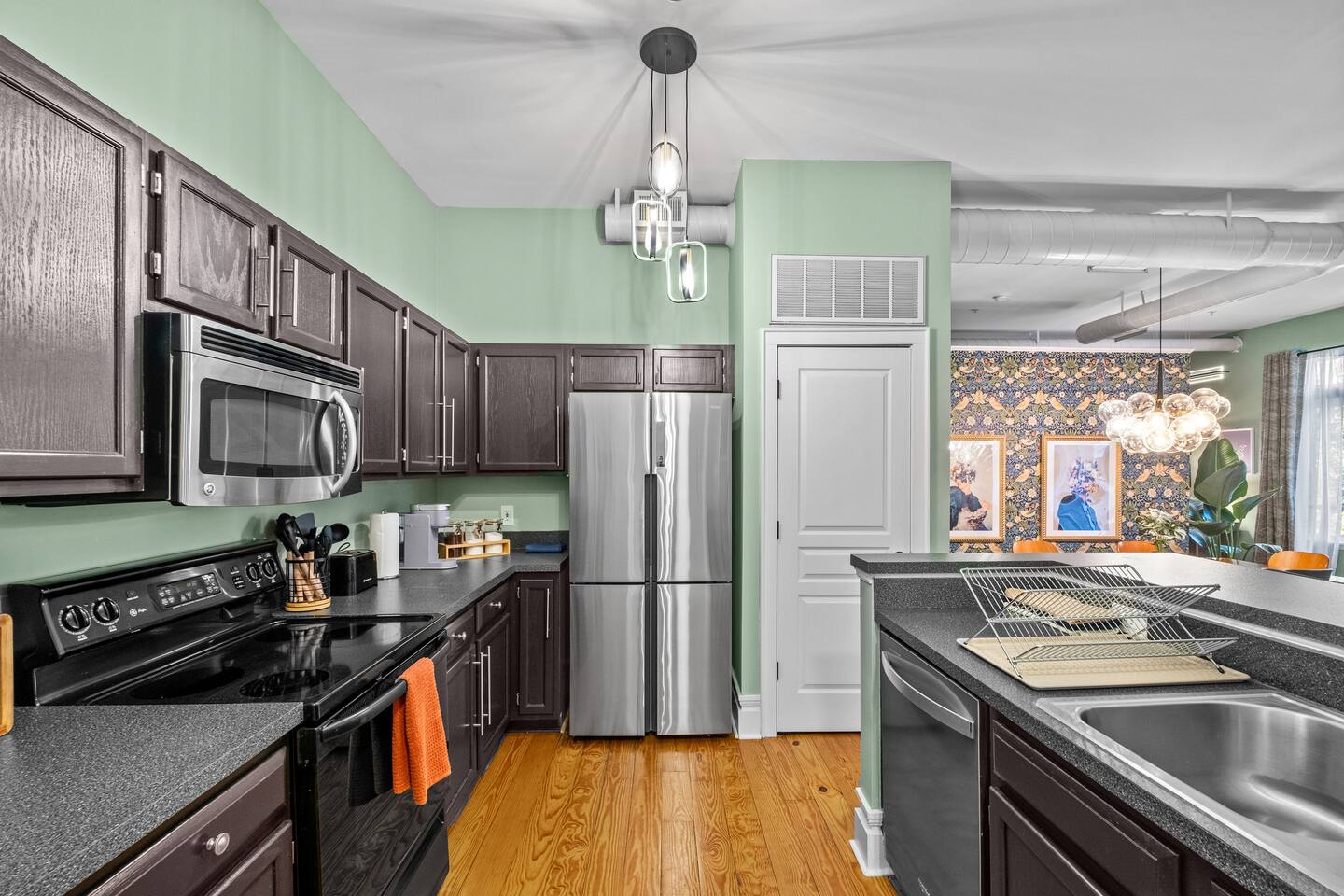 Discover a King sized cozy loft in Elizabeth! Open layout, 10ft ceilings, pine wood floors. Kitchen with a coffee bar, new stainless steel appliances. Spacious living area, dining space. Bedroom with privacy wall, large walk-in closet. Updated bathroom, new sink, shower head. Secure building with elevator, gated parking, outdoor patio. Free live television and internet! Prime location, walk to Elizabeth/Plaza Midwood shops, restaurants, wine bars. Short drive to Uptown. 7 day minimum booking.