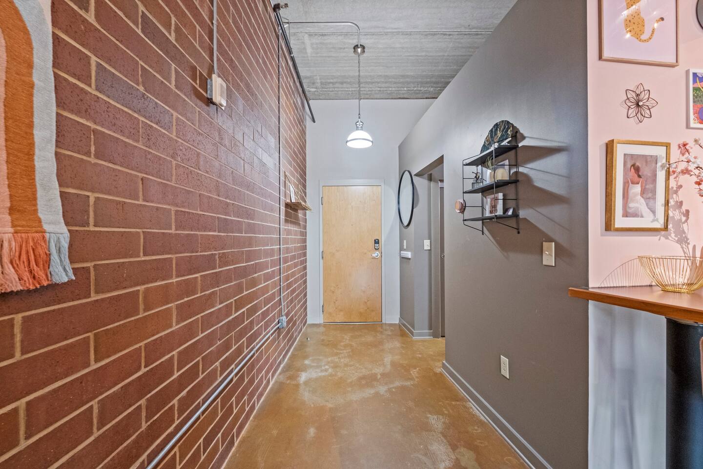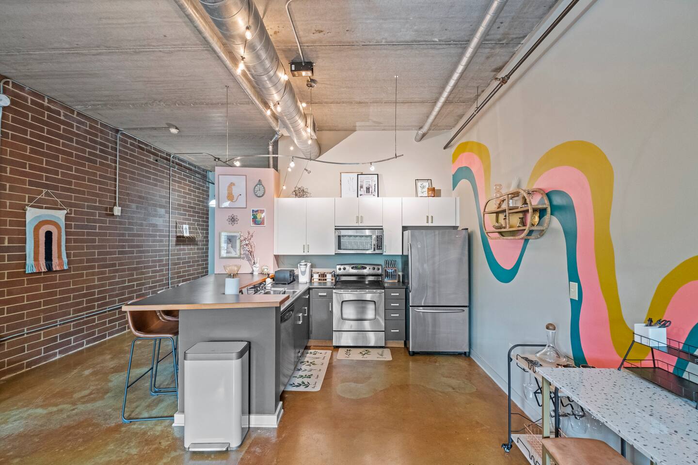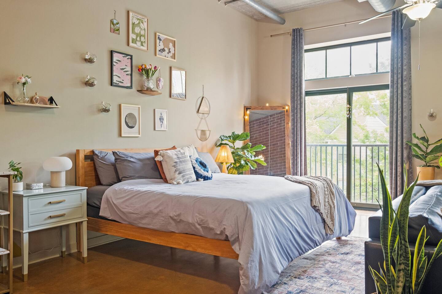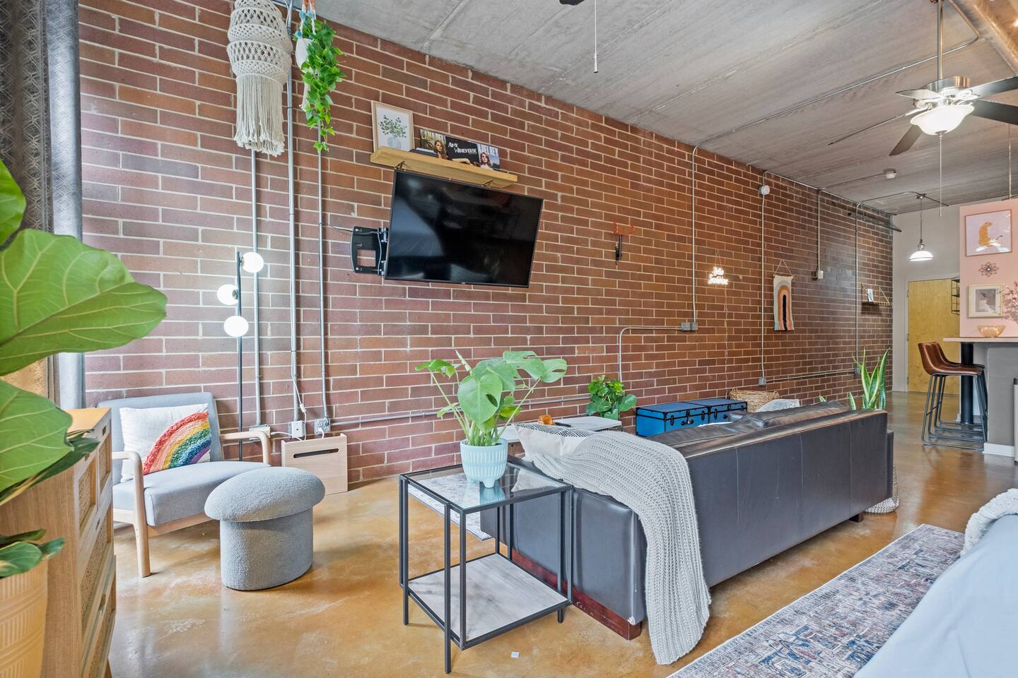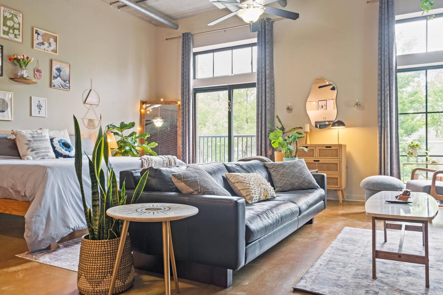 *Strict non-smoking policy* Enjoy a fun experience at this king studio in uptown Charlotte! High-speed internet & free live television on a huge screen! The unique exposed brick, high ceilings and concrete floors give the space a chic industrial feel, while the decor balances a warm homey vibe. Perfect location for exploring uptown Charlotte! Ideal for couples or solo travelers. 2 min drive/19 min WALK to Panthers Stadium 3 min drive/18 min WALK to Spectrum Center. 7 day minimum booking.