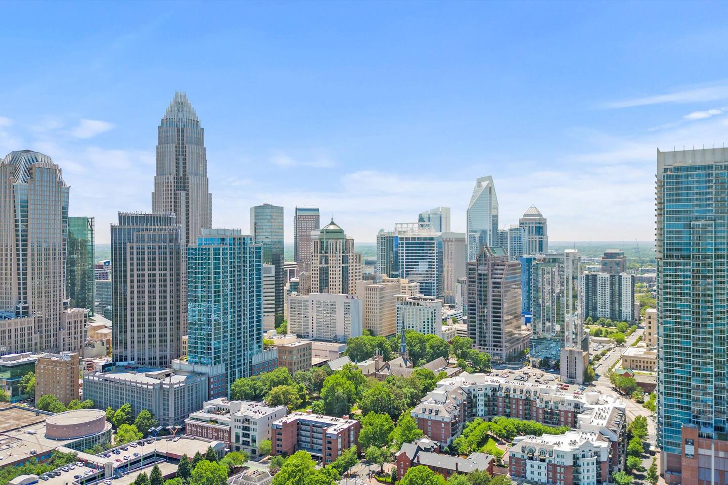 Uptown Charlotte is the perfect location for those looking to experience all that the city has to offer. As the heart of the city, it is home to some of Charlotte's most popular attractions, such as the Bank of America Stadium, home of the Carolina Panthers, the Spectrum Center, home of the Charlotte Hornets and host of many concerts and events, the NASCAR Hall of Fame, where you can immerse yourself in the history and excitement of NASCAR, and the Fillmore, a concert venue that features a variety of live music and entertainment. You'll be just steps away from the best dining, shopping, and nightlife that Queen City is known for. Whether you're in town for business or pleasure, you'll love the convenience and the lively atmosphere of this cosmopolitan neighborhood. Stay in Uptown Charlotte and have an unforgettable experience during your trip!