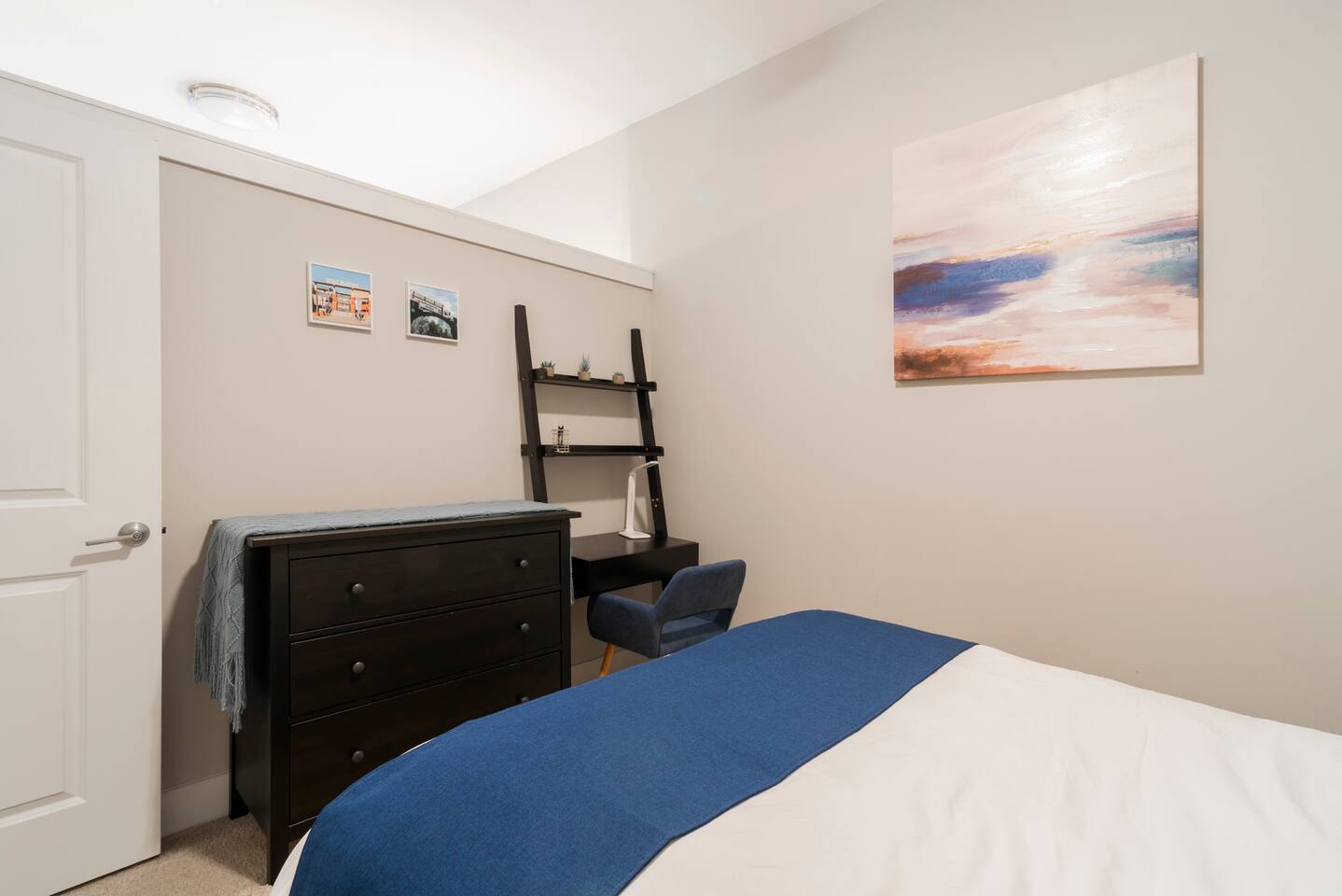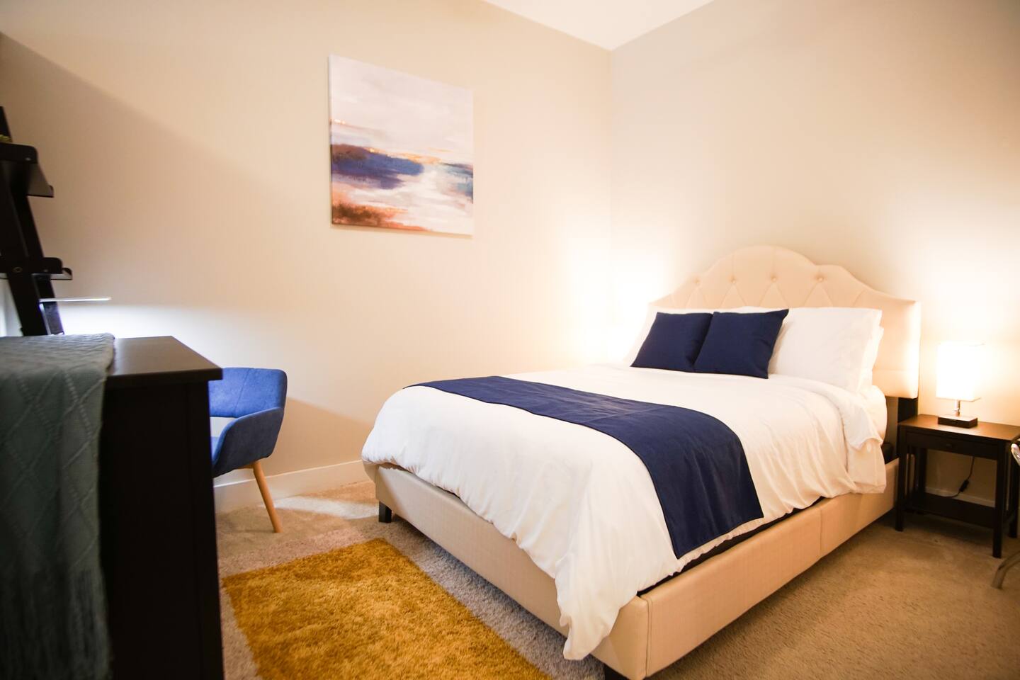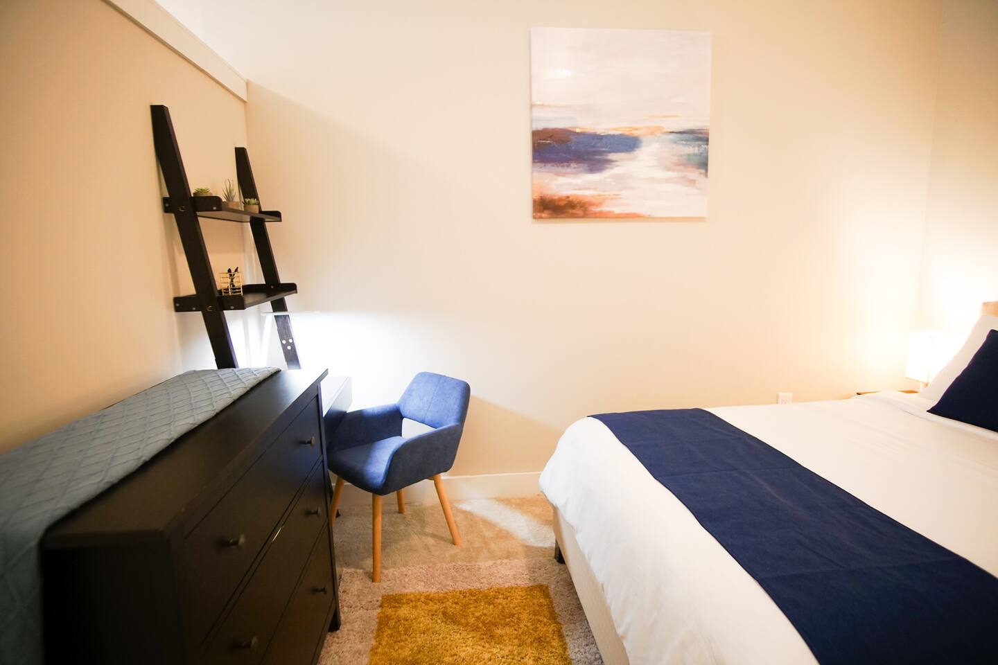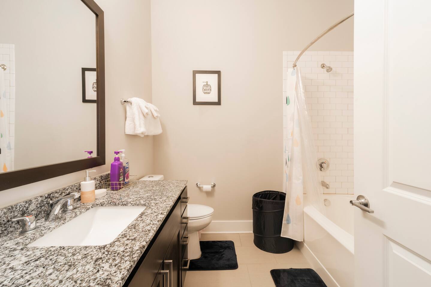 As a guest of ours, you will have access to a fully loaded fitness and conditioning center, a large salt-water swimming pool with sundeck, yoga room, a luxurious entertainment lounge, tech lounge with Mac stations and FREE barista coffee bar, rooftop terrace with fireplace, and sky lounge seating with skyline views Guests also have access to our in-unit washer and dryer! Other amenities: free wifi, tv lounge area, iron + board, body wash with shampoo, dedicated business/work area, and free parking. Smart tv for access to your personal streaming accounts like Netflix, Hulu, YouTube and USB outlets/lamps.
